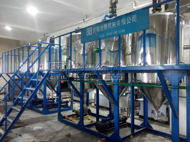 精煉油設(shè)備主要是對榨出來的毛油進行加工,使原料達到桶裝油標(biāo)準(zhǔn)(可以裝桶上超市買)或者國家高級食用油標(biāo)準(zhǔn)。植物毛油只是榨油或浸出的產(chǎn)物,它含有對消費者有害的物質(zhì)。 這些物質(zhì)有些是自然存在的,有些是在生產(chǎn)或儲存過程中產(chǎn)生的,對人們消費而言,這些物質(zhì)必須仔細地去除。由于它們產(chǎn)生的根源不同,精煉須在不同的條件下分幾步進行。隨著毛油的不同,精煉工藝分:脫膠,脫酸,脫色,脫臭,脫膠等幾步,根據(jù)毛油的品種可采用其中的幾步或全部工藝。